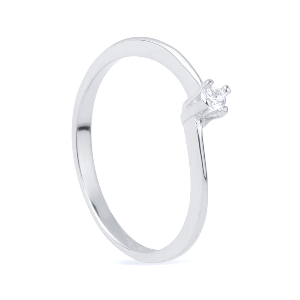 Anel Prateado Solitário com Zircônia